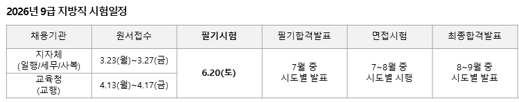 2026년 9급 지방직 공채 시험 일정