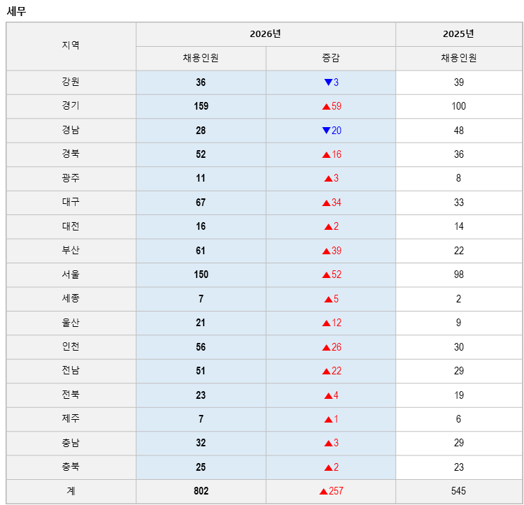세무직은 총 802명을 채용한다.